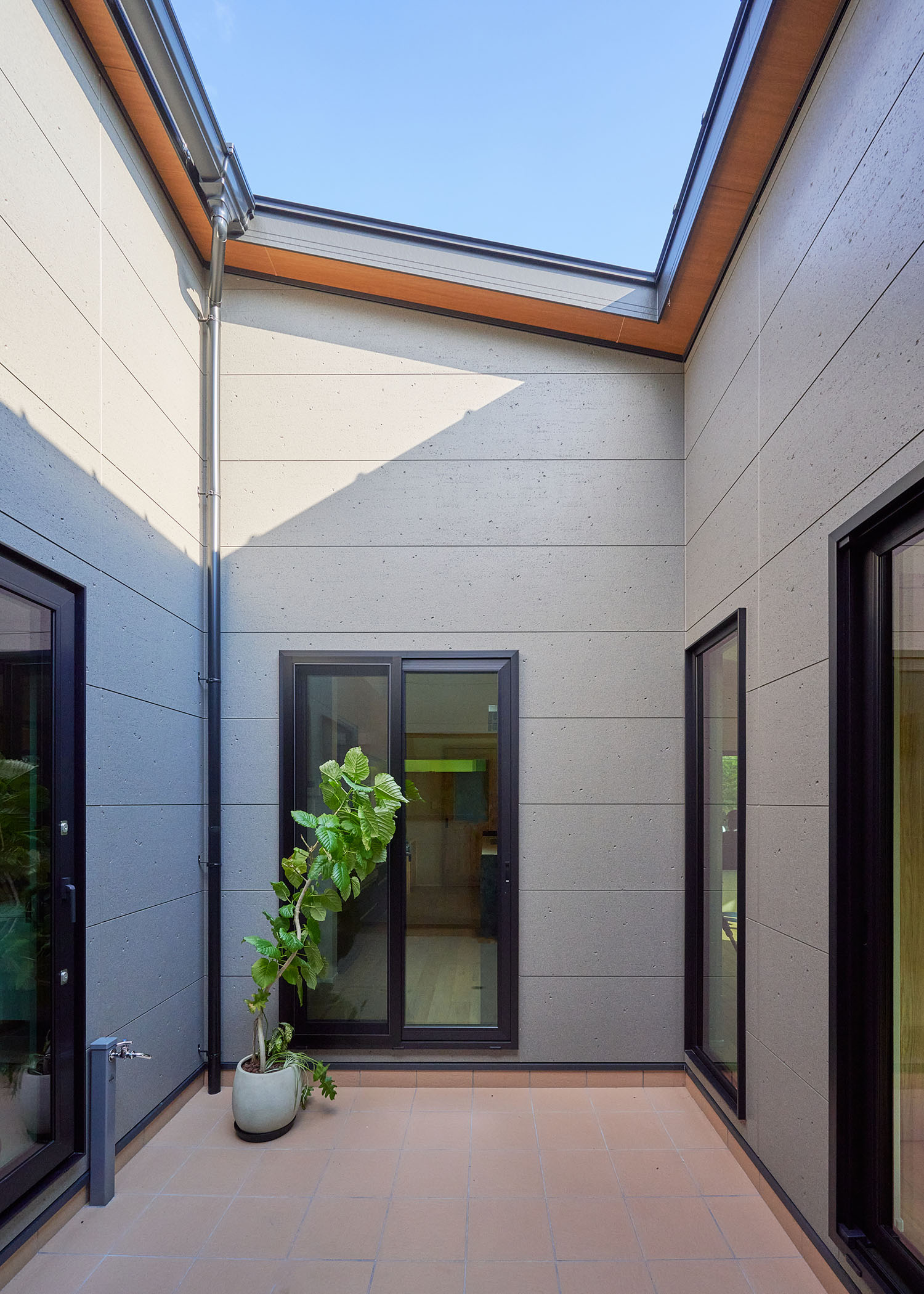 回廊構造で囲まれ、プライベートな光と風を運ぶロの字型の中庭。