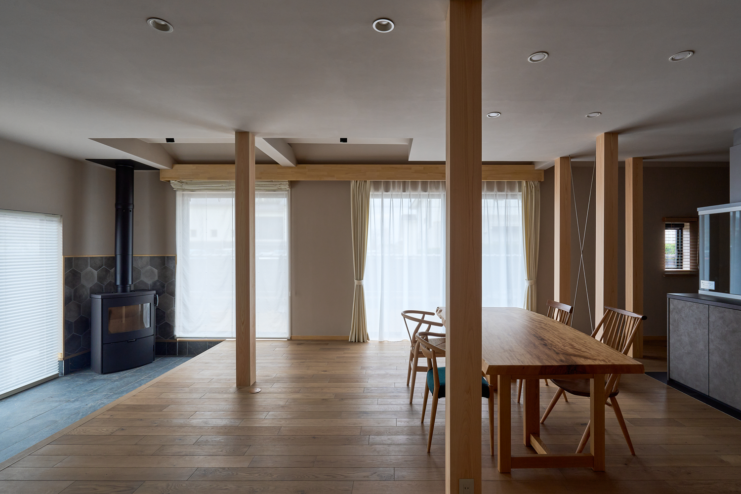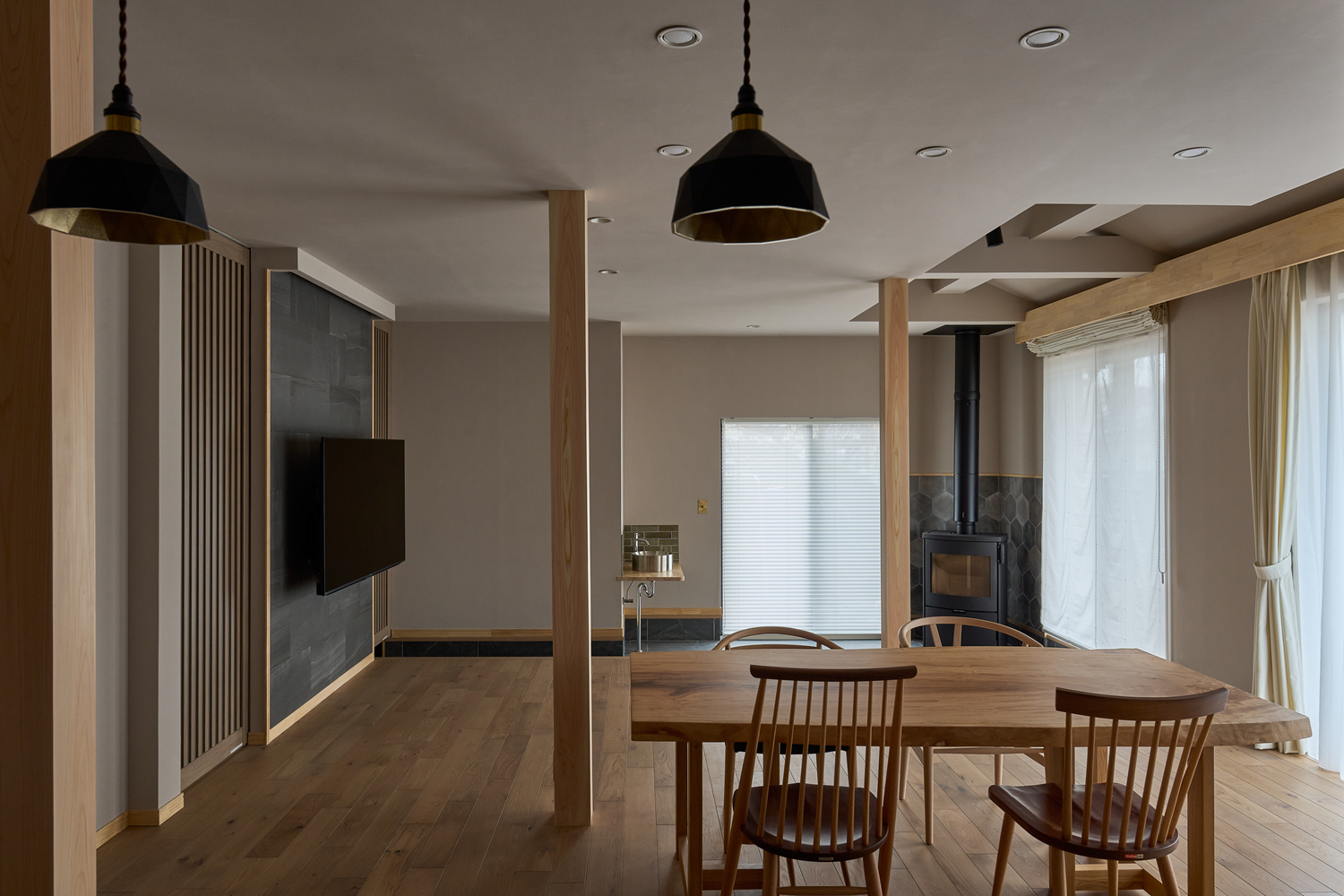 薪ストーブが彩る、上質で心安らぐリビングダイニング。